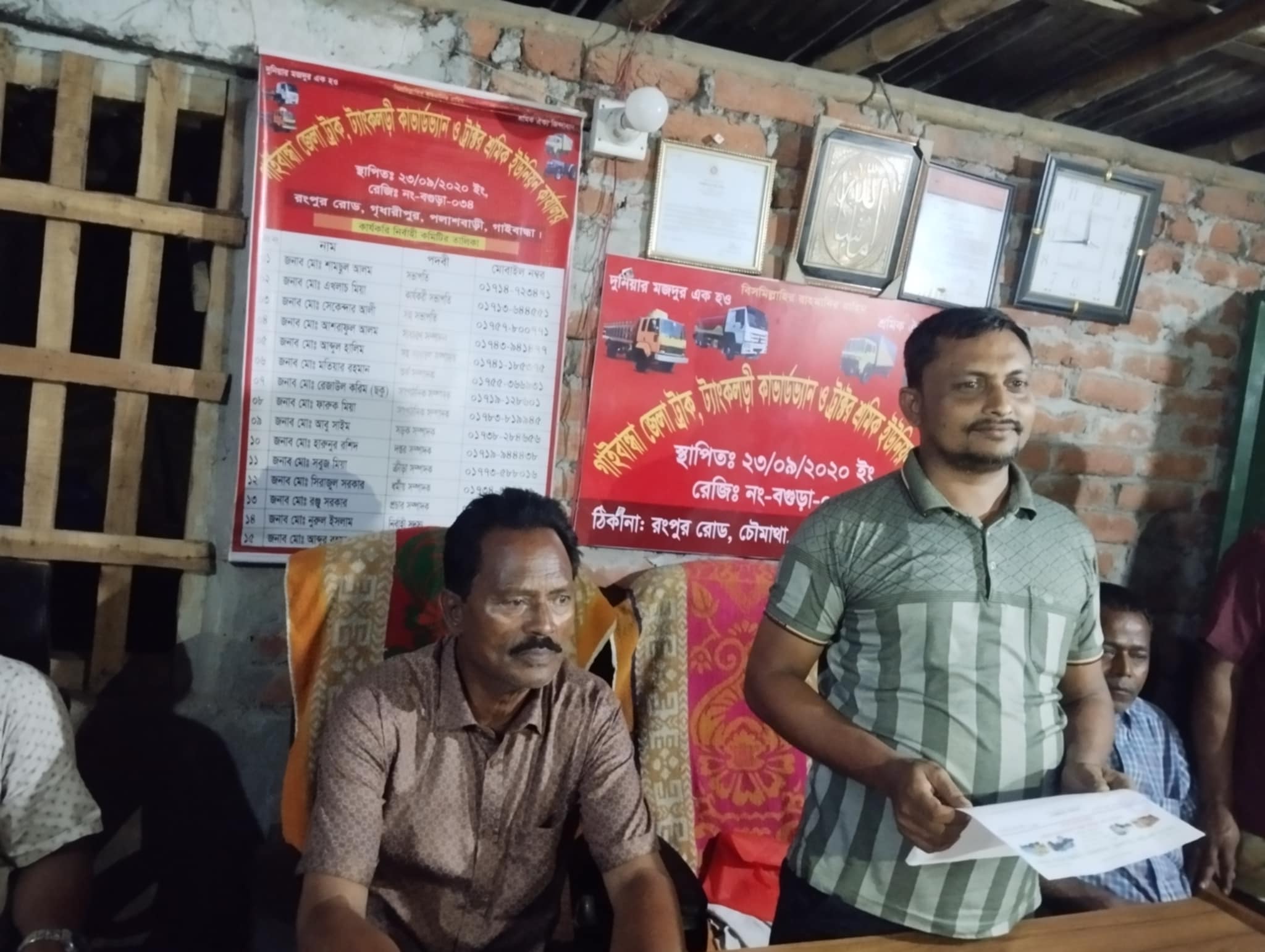বাংলাদেশ সড়ক পরিবহন শ্রমিক ফেডারেশনের অন্তর্ভুক্ত (রেজিঃ নং- বি-১৭২৪)এর গাইবান্ধা জেলা ট্রাক,ট্যাংক- লড়ী,কাভার্ডভ্যান ও ট্রাক্টর শ্রমিক পরিষদ(রেজিঃ নং-বগুড়া -০৩৪)পলাশবাড়ী পৌরশহরের রংপুর বাস স্ট্যান্ড গৃধারীপুর প্রধান কার্যালয়ের আয়োজনে এক জরুরি সংবাদ সম্মেলন অনুষ্ঠিত হয়।