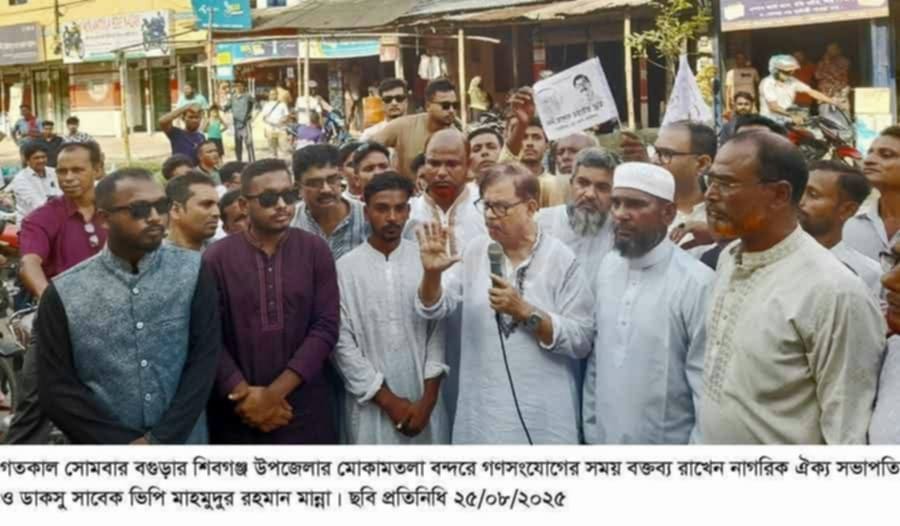 এস আই সুমনঃ স্টাফ রিপোর্টারঃ নাগরিক ঐক্যর সভাপতি ও ডাকসুর সাবেক ভিপি মাহমুদুর রহমান মান্না সোমবার বিকালে বগুড়ার শিবগঞ্জ উপজেলা ৩টি ইউনিয়নে গণসংযোগ করেছেন। তিনি বিকাল ৪ ঘটিকায় মোকামতলা বন্দরে গণসংযোগ করেন। এরপর তিনি সৈয়দপুর ইউনিয়নের জগন্নাথপুর বাজারে, একই ইউনিয়নের হাবিবপুর ও সন্ধ্যায় দেউলী ইউনিয়নের গাংনগর ও রহবল বন্দরে গণসংযোগ করেন এবং ৩টি স্থানেই তিনি পথ সভায় বক্তব্য রাখেন।