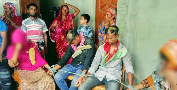 ঘটনার সময় উত্তেজিত গ্রামবাসী চারজনকেই রশি দিয়ে বেঁধে রাখেন। পরে তাদের মাথা ন্যাড়া করে গলায় জুতার মালা পরিয়ে দেওয়া হয়।