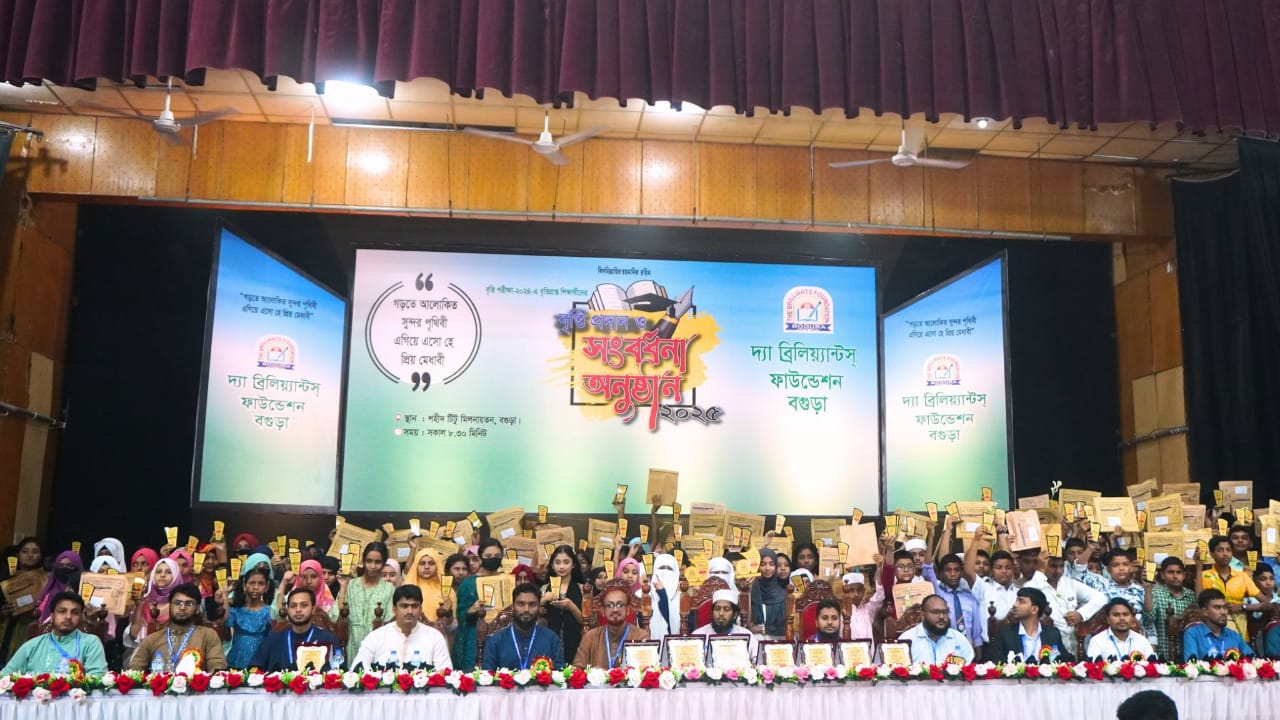 দ্যা ব্রিলিয়্যান্টস্ ফাউন্ডেশন, বগুড়ার উদ্যোগে আয়োজিত বৃত্তি পরীক্ষা ২০২৪ এর বৃত্তি প্রাপ্ত মেধাবী শিক্ষার্থীদের বৃত্তি প্রদান ও সংবর্ধনা অনুষ্ঠান সম্পন্ন হয়েছে। ১৯ সেপ্টেম্বর শুক্রবার সকাল ৮:৩০ ঘটিকায় বগুড়ার শহীদ টিটু মিলনায়তনে এই সংবর্ধনার আয়োজন করা হয়।