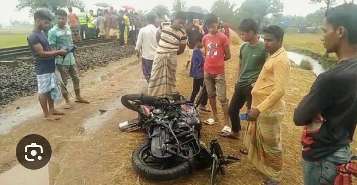 বগুড়া জেলার আদমদীঘি উপজেলার ছাতিয়ানগ্রামে রেলগেটে মোটরসাইকেল পার হওয়ার সময়