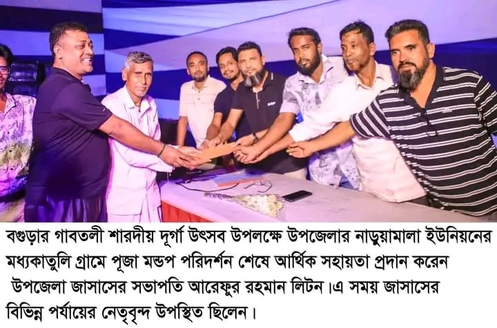 শারদীয় দুর্গা পূজা উদযাপন উপলক্ষে ২ অক্টোবর বগুড়ার গাবতলী উপজেলার বিভিন্ন পূজা মণ্ডপ পরিদর্শন করেছেন গাবতলী উপজেলা জাসাস এর সভাপতি আরেফুর রহমান লিটন।