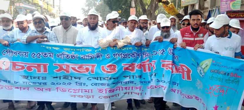 আইডিইবি'র ৫৫তম প্রতিষ্ঠা বার্ষিকী ও গণপ্রকৌশল দিবস উপলক্ষে বগুড়া জেলা আইডিইবি'র উদ্যোগে রবিবার (০৯ নভেম্বর) সকাল ১০.০০ ঘটিকায় শহীদ খোকন পার্কে আলোচনা সভা ও বর্ণাঢ্য শোভাযাত্রা অনুষ্ঠিত হয়। উক্ত কর্মসূচীতে প্রধান অতিথি হিসেবে উপস্থিত ছিলেন, বগুড়া জেলা বিএনপি'র সভাপতি ও সাবেক মেয়র মোঃ রেজাউল করিম বাদশা । প্রধান অতিথি বেলুন ও কবুতর উড়িয়ে প্রতিষ্ঠা বার্ষিকী ও গণপ্রকৌশল দিবস এর শুভ উদ্ভোদন করেন । প্রধান অতিথি রেজাউল করিম বাদশা বলেন, একটি দেশের অর্থনৈতিক প্রবৃদ্ধি এবং সামগ্রিক উন্নয়নের মুল চালিকা শক্তি দক্ষ জনশক্তি।