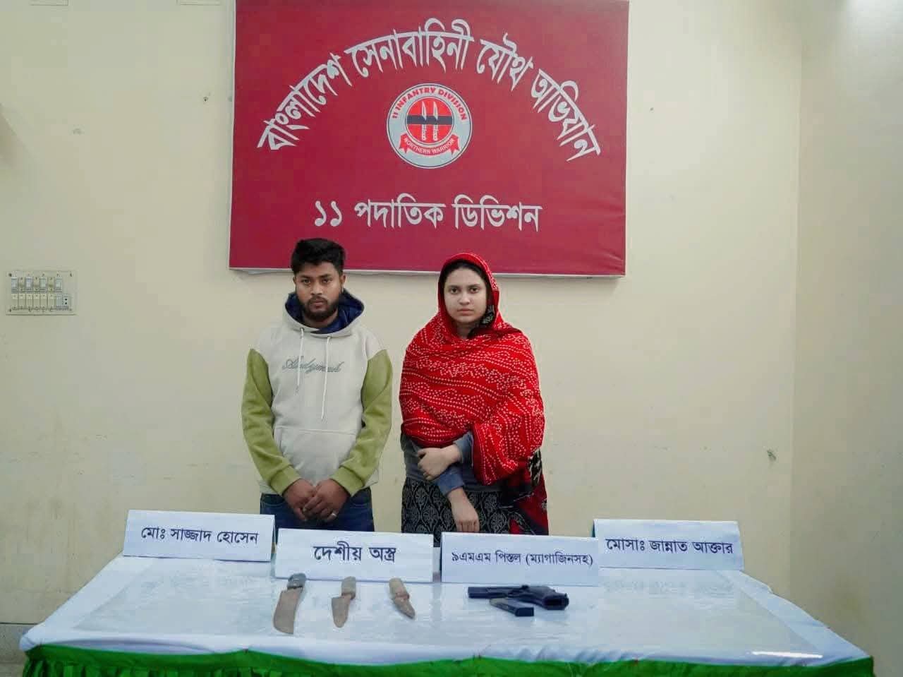 গোয়েন্দা তথ্যের ভিত্তিতে, ক্যাপ্টেন সাদিফ এবং লেফটেন্যান্ট ফাহাদের নেতৃত্বে ৪০ বীর-এর আভিযানিক দল বগুড়ার শাজাহানপুর উপজেলার আশেকপুর ইউনিয়ন এলাকা হতে মো সাজ্জাদ হোসেন নামক একজন চিহ্নিত সন্ত্রাসীকে গ্রেপ্তার করে। জিজ্ঞাসাবাদে সাজ্জাদ তার কাছে জার্মানির তৈরি একটি ৯ মিমি পি'স্তল রয়েছে বলে স্বীকার করে। পরবর্তীতে সন্ত্রাসী সাজ্জাদকে সাথে নিয়ে আভিযানিক দল পিস্তল উদ্ধারে তার নিজ বাসায় গেলে, সাজ্জাদের সহযোগী ও তার স্ত্রী জান্নাত আক্তার সেনাবাহিনীর উপস্থিতি টের পেয়ে পিস্তলটি বাড়ির পাশে একটি নর্দমায় ফেলে দেয়।